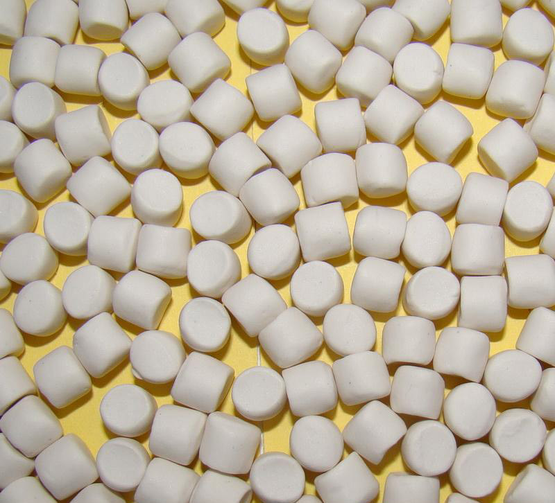 加 工 通常情況下,粉狀促進劑TMTD容易飛揚且粘附設備,混煉時不容易分散均勻,硫化膠易噴霜。但是預分散® HiDispersion TMTD-80則易于配料混煉;正常存放條件下不會結塊;流動性好,無粉塵飛揚,不會造成加料損失,在各種膠料中吃料容易且分散均勻,保證了有效組分TMTD的更佳活性。建議在混煉末期加入。